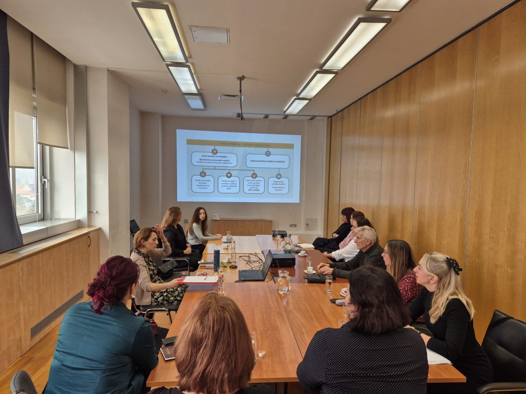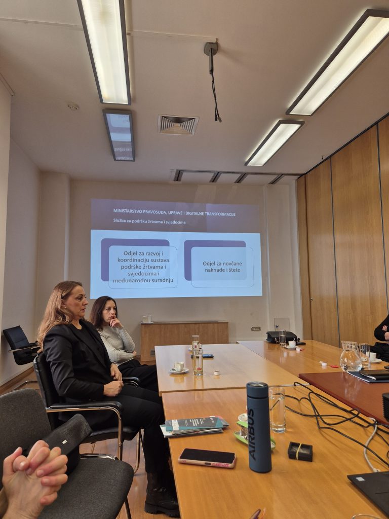 Drugi dan, 13. studenog posjetili smo Ministarstvo pravosuđa, uprave i digitalne transformacije gdje smo imali priliku čuti više te razmijeniti iskustva u radu Službe za podršku žrtvama i svjedocima te njihovom ulogom u pružanju pomoći i podrške žrtvama trgovanja ljudima.